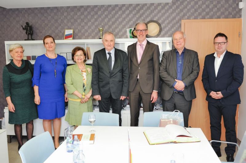 Dňa 11. 4. 2018 navštívil na pozvanie Katedry germanistiky FF UCM našu univerzitu jeho excelencia veľvyslanec SRN pán Joachim Bleicker. Pán veľvyslanec bol prijatý povereným rektorom UCM prof. Ing. Jozef Lehotayom, DrSc., za účasti prorektorky pre zahraničné vzťahy doc. PhDr. Ruženy Kozmovej, CSc. a dekanky FF UCM doc. PhDr. Kataríny Slobodovej Novákovej, PhD. Témami rozhovorov boli možnosti spolupráce v oblasti vzdelávacej a vedecko-výskumnej činnosti, ako i potreba získania DAAD lektora. Stretnutia sa zúčastnil aj Prof.(em) Dr. Georg Lohman, doc. Martin Muranský, PhD. et Dr. phil. a vedúca katedry germanistiky PhDr. Daniela Drinková.