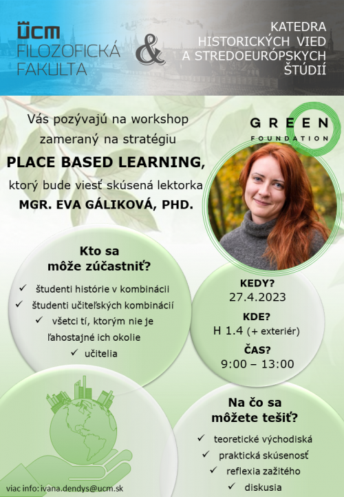Workshop sa bude konať vo štvrtok 27.4.2023 v čase 9:00 - 13:00 a je zameraný na vzdelávaciu stratégiu Place based learning.