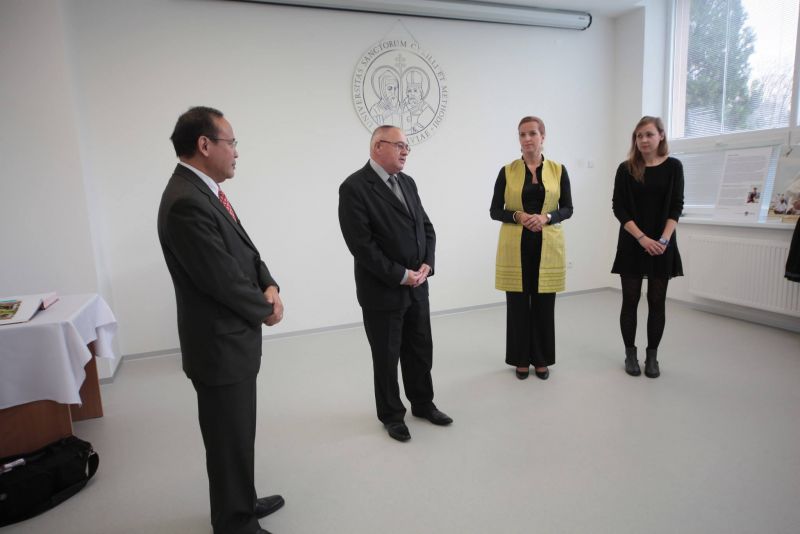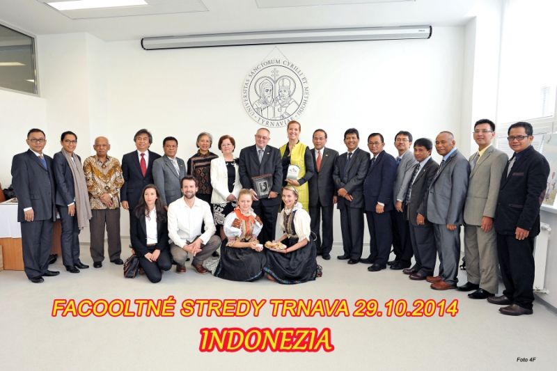 Na pôde našej univerzity privítal rektor Dr.h.c. doc. Ing. Jozef Matúš, CSc., mim. prof. a dekanka FF doc. Mgr. Katarína Slobodová Nováková, PhD. oficiálnu „Delegáciu pre indonézsko-slovenský medzináboženský a medzikultúrny dialóg“. Tá prijala pozvanie aj vďaka veľvyslancovi Indonézskej republiky, H. E. Mr. Djumantoro Purwokoputro Purbo, MA, ktorý navštívil našu univerzitu v sprievode manželky a zástupcov veľvyslanectva. Pätnásťčlennú delegáciu tvorili reprezentanti z ministerstva zahraničných vecí, ministerstva pre náboženské záležitosti, predstavitelia náboženských obcí a rektori dvoch univerzít.