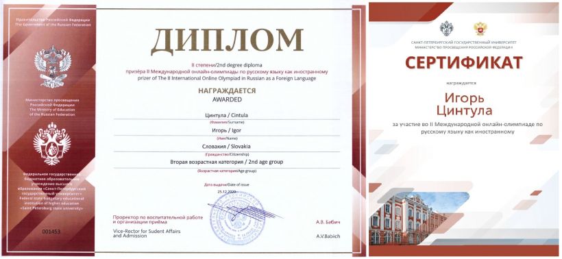 V termíne od 5.11.2020 do 13.12.2020 Petrohradská štátna univerzita v spolupráci s Ministerstvom školstva Ruskej federácie organizovala 2. ročník medzinárodnej online olympiády z ruského jazyka ako cudzieho, do ktorej sa zapojilo viac ako 9500 ľudí zo 147 krajín sveta.