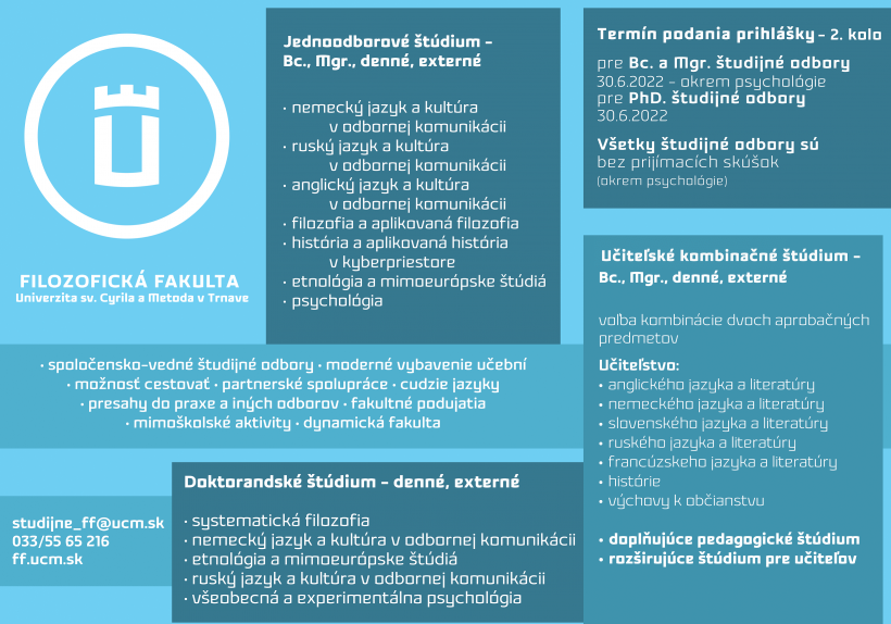Prijímacie konanie na akademický rok 2022/2023 sa predlžuje do 30.06.2022 - okrem psychológie.