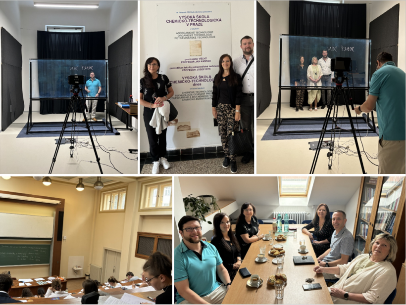Okrem prehliadky priestorov a chemických laboratórií Ústavu učitelaství chémie a humanitních věd na VŠCHT navštívili pracovníci Katedry pedagogiky FF UCM špeciálne laboratórium „Light board laboratórium“ pre vytváranie edukačných programov v dištančnom vzdelávaní.