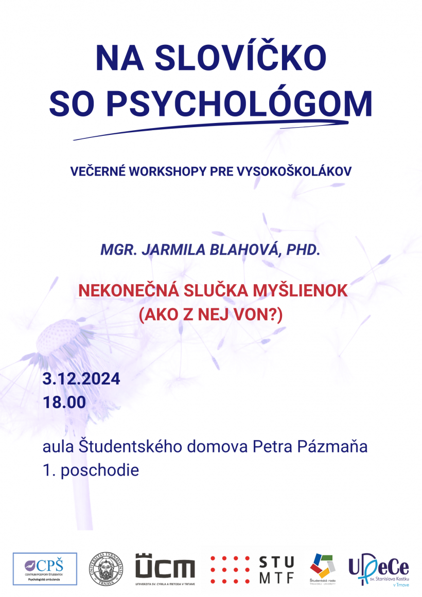 NA SLOVÍČKO SO PSYCHOLÓGOM - Večerné workshopy pre vysokoškolákov - Nekonečná slučka myšlienok (Ako z nej von?)