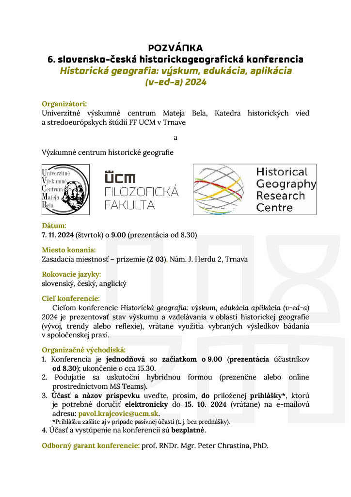 POZVÁNKA: 6. slovensko-česká historickogeografická konferencia