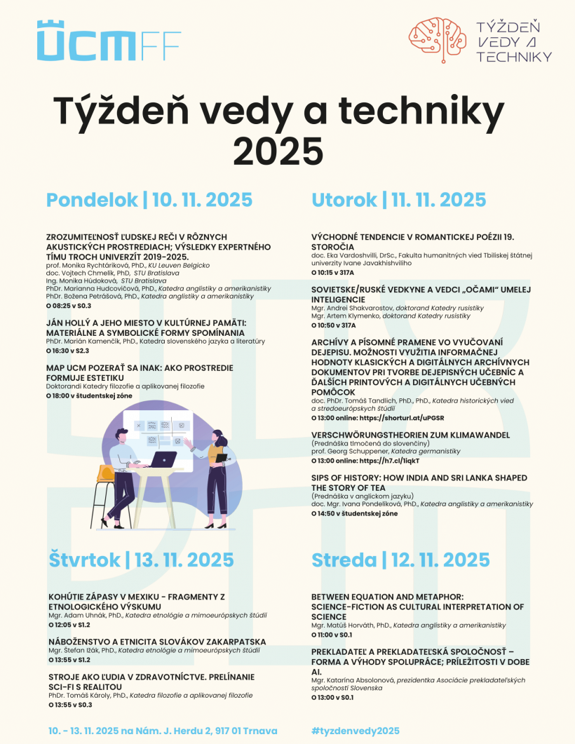 📍 Miesto konania: Filozofická fakulta UCM, Nám. J. Herdu 2, Trnava