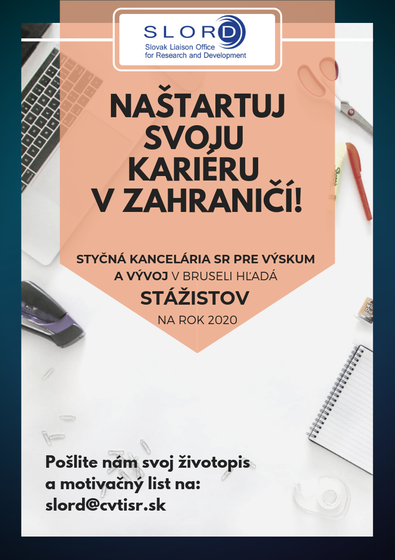 Styčná kancelária SR pre výskum a vývoj v Bruseli (SLORD) otvára možnosť absolvovania stáže v Bruseli v roku 2020!