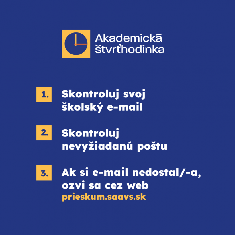 Od 3. mája 2021 sa začína celoslovenský prieskum študentskej spokojnosti pod názvom Akademická štvrťhodinka.