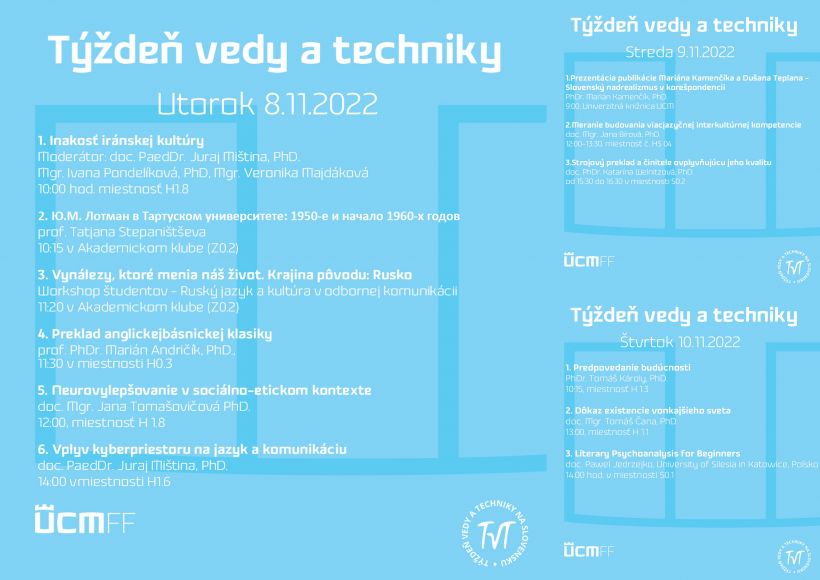 Katedry Filozofickej fakulty UCM si pre Vás pripravili nasledujúci program: