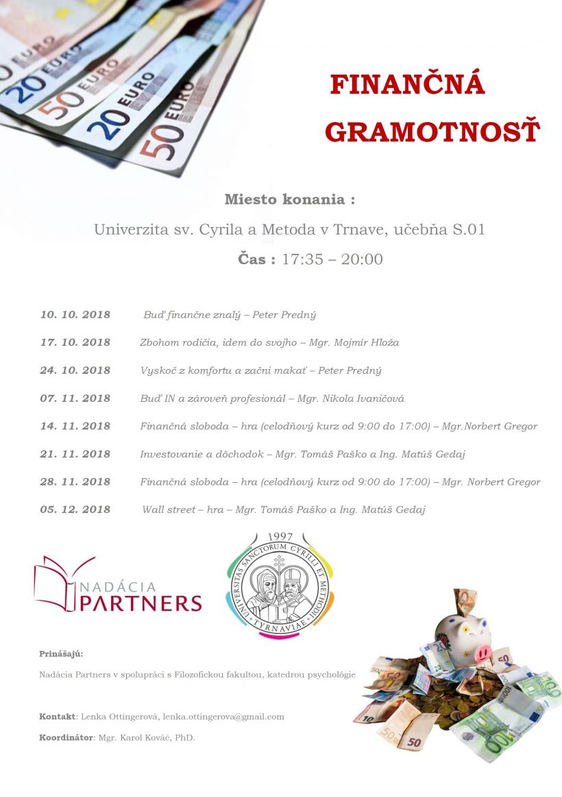 Už túto stredu od 17.35 v miestnosti S0.1 štartujeme ďalší ročník projektu Finančná gramotnosť.