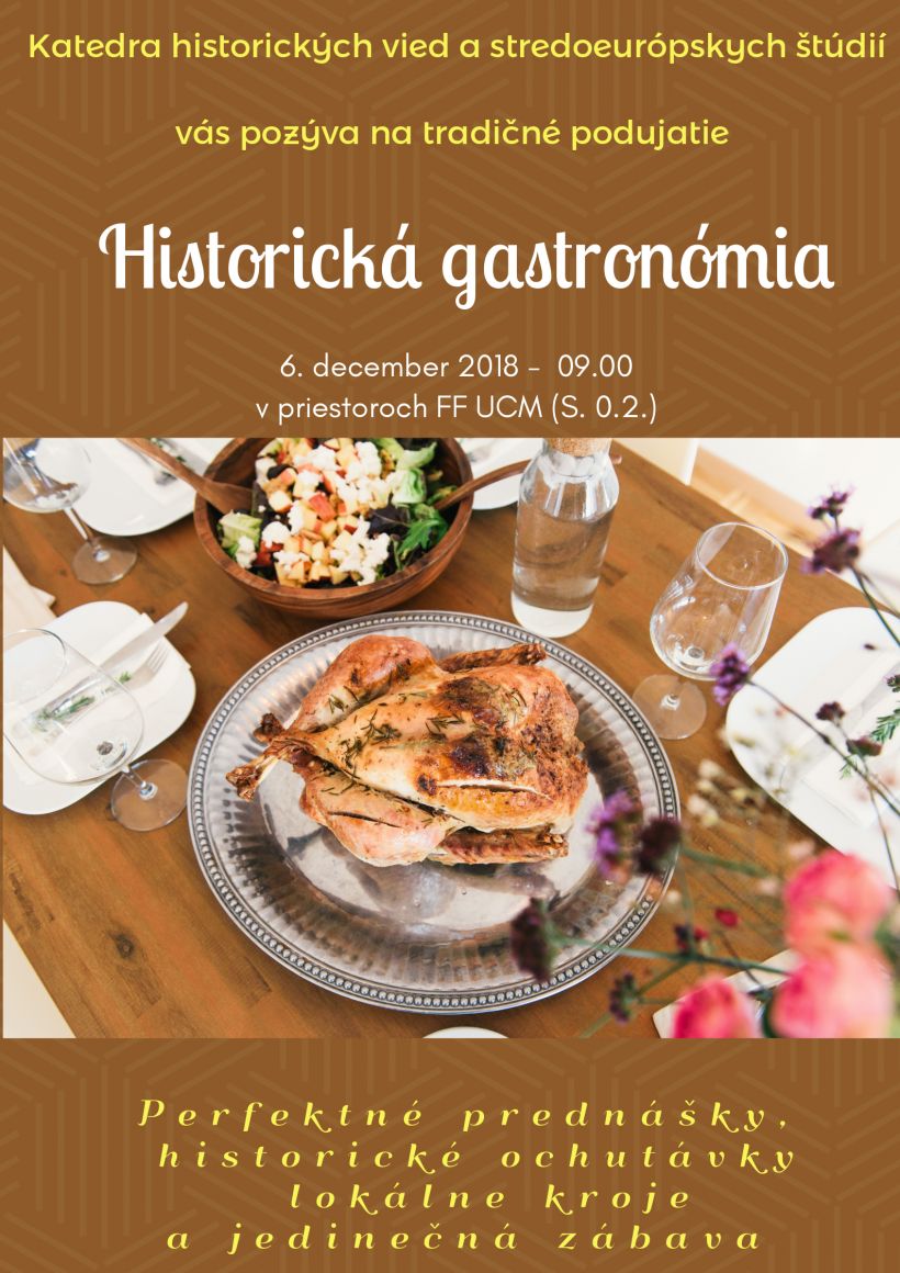 Katedra historických vied a stredoeurópskych štúdií pozýva na tradičné podujatie Historická gastronómia, ktoré sa uskutoční dňa 6. 12. 2018 o 9.00 hod. v miestnosti S 0.2.