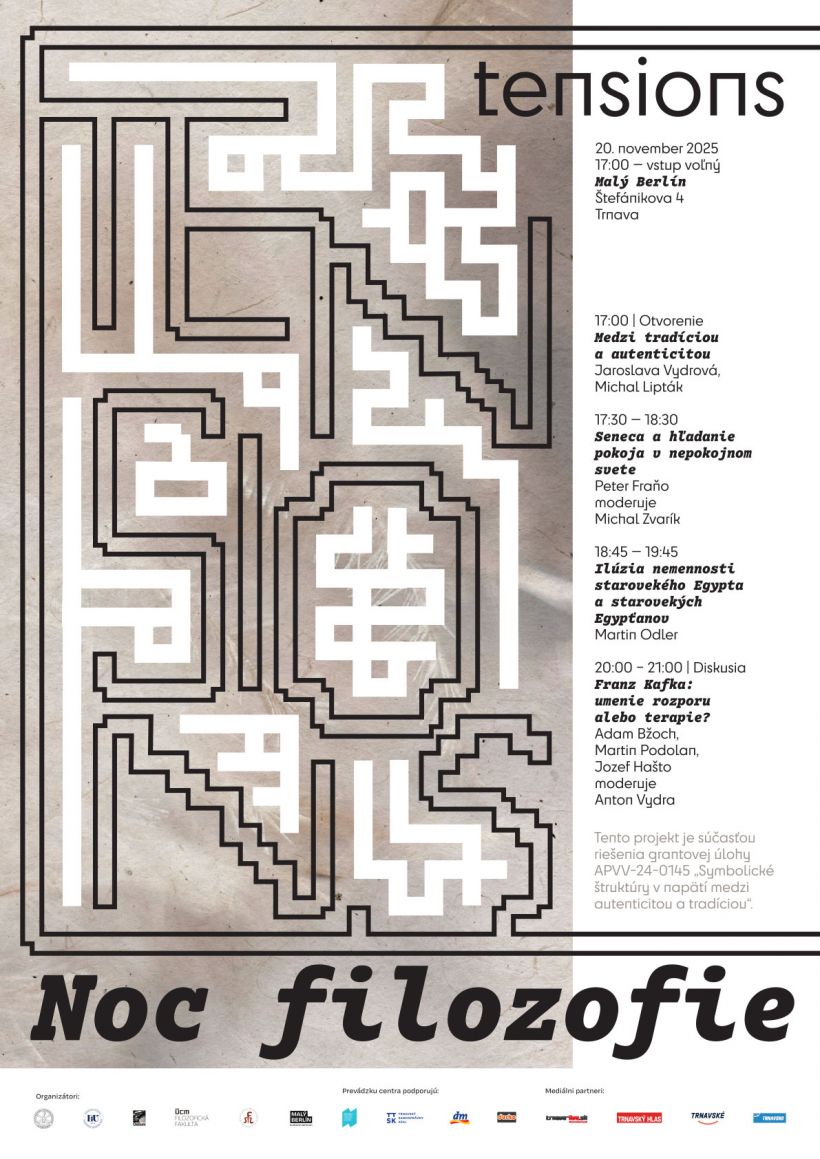 Dňa 20. 11. 2025 od 17:00 hod. v KC Malý Berlín spoluorganizuje Katedra filozofie a aplikovanej filozofie FF UCM v Trnave podujatie s názvom Noc filozofie 2025.