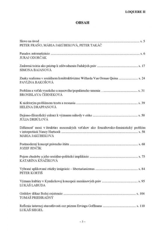 Našim kolegom, doktorandom a študentom z katedry filozofie a aplikovanej filozofie uverejnili viacero zaujímavých štúdií v recenzovanom vedeckom zborníku s názvom LOQUERE II, ktorý si môžete zapožičať v digitálnej podobe (na CD) v Univerzitnej knižnici UCM. Nájdete v ňom napr. štúdie "Problém a vzťah vysokého a masového/populárneho umenia", "Zmluvná teória ako prístup k zdôvodneniu ľudských práv" a mnohé iné.