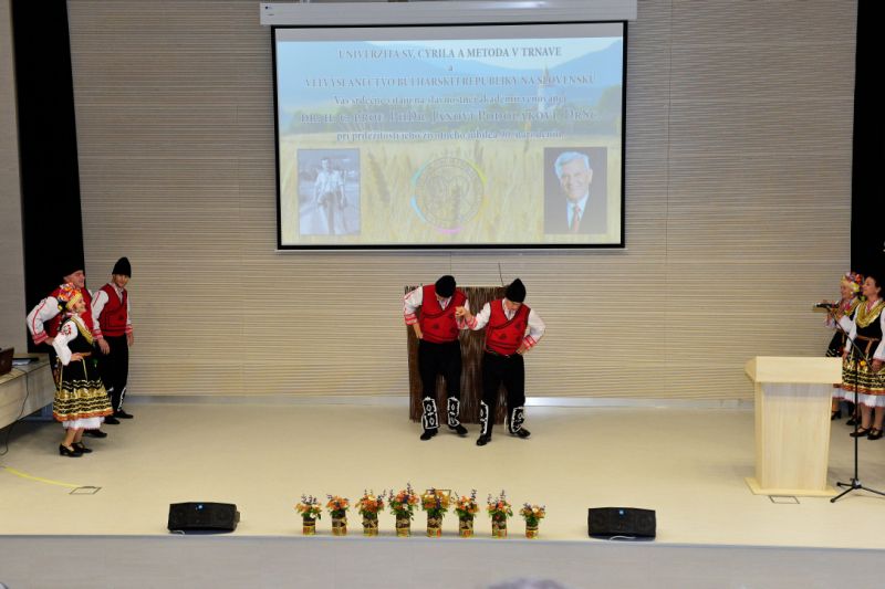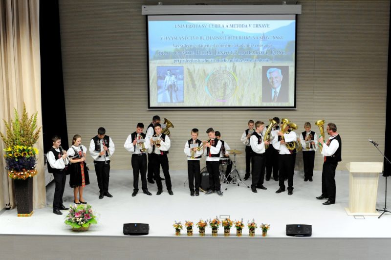 Program je okrem oficiálnych príhovorov, gratulácií, dotvorený aj kultúrnym programom. Detská dychová hudba z rodiska pána profesora, Dolnej Súče, mužský spevácky zbor z Heľpy, bulharská folklórna skupina Sláviček, bulharská tanečná skupina Veselie a Trnafská cimbalovka svojimi hudobno-tanečnými vystúpeniami spestria túto mimoriadnu príležitosť. Úvodný vstup bude patriť obľúbenej a váženej slovenskej herečke prof. Božidare Turzonovovej.
